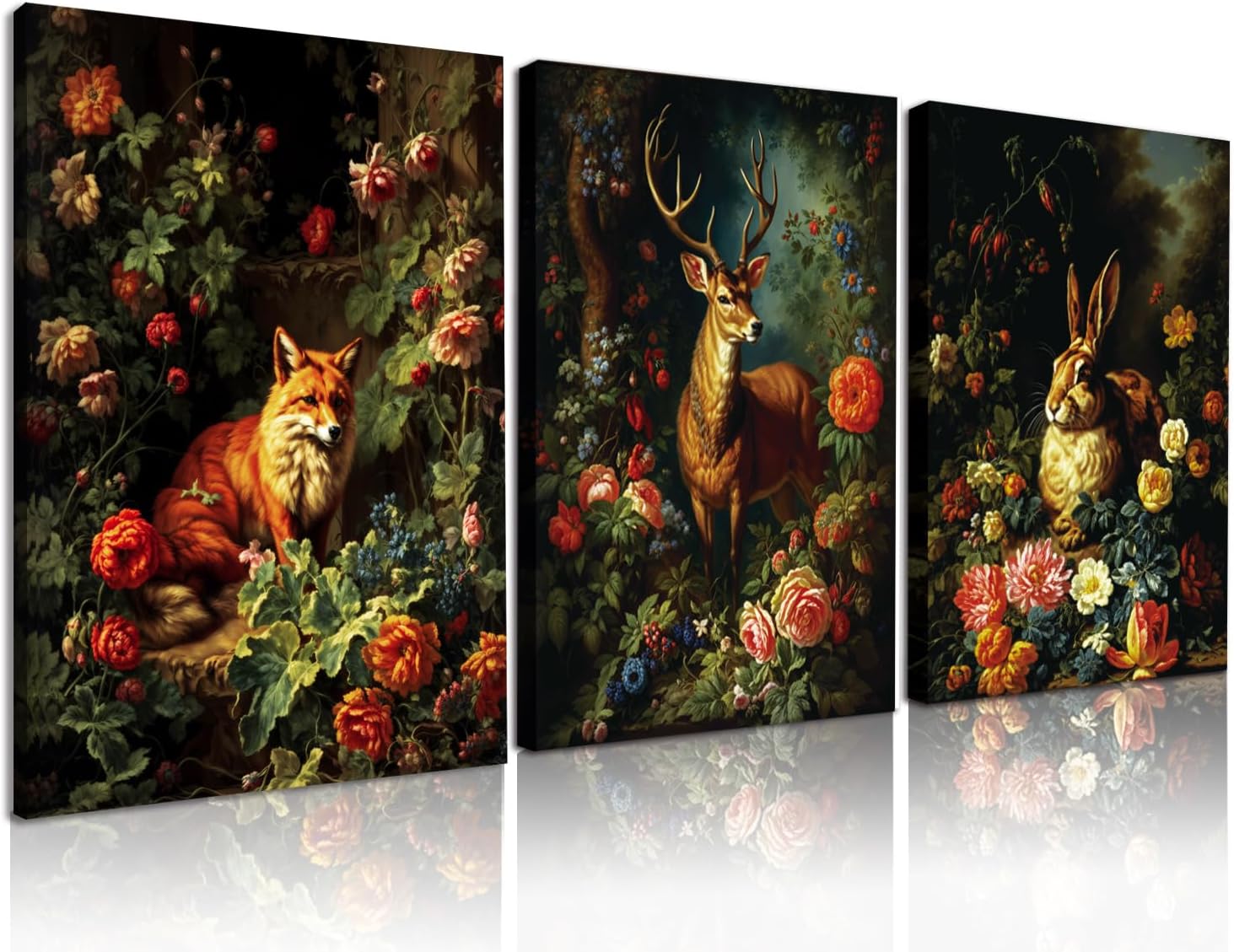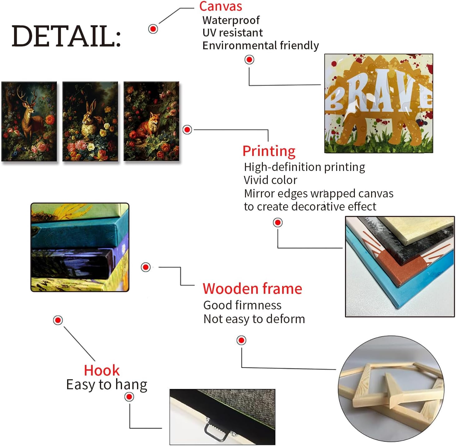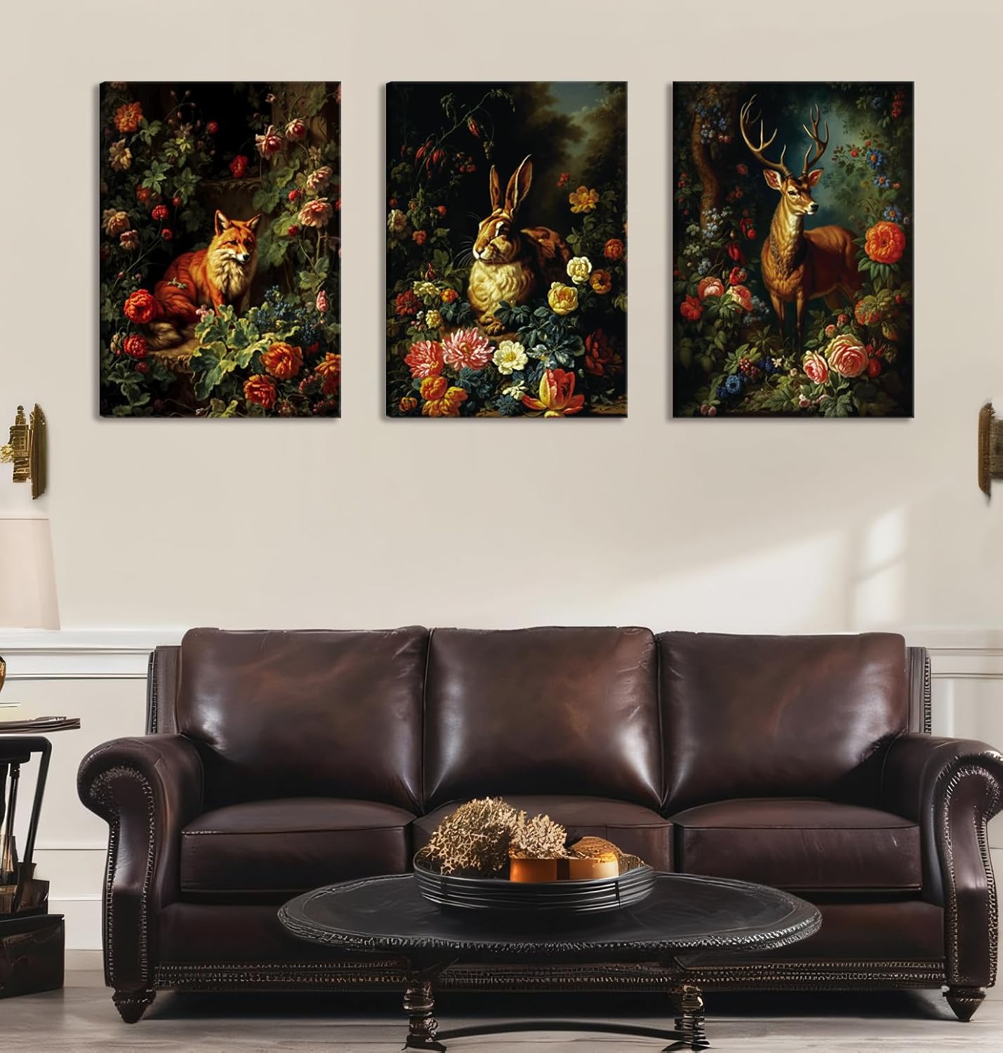 Forest Animal Wall Art ready to hang .canvas wrapped wood frame, includes hanging accessories.