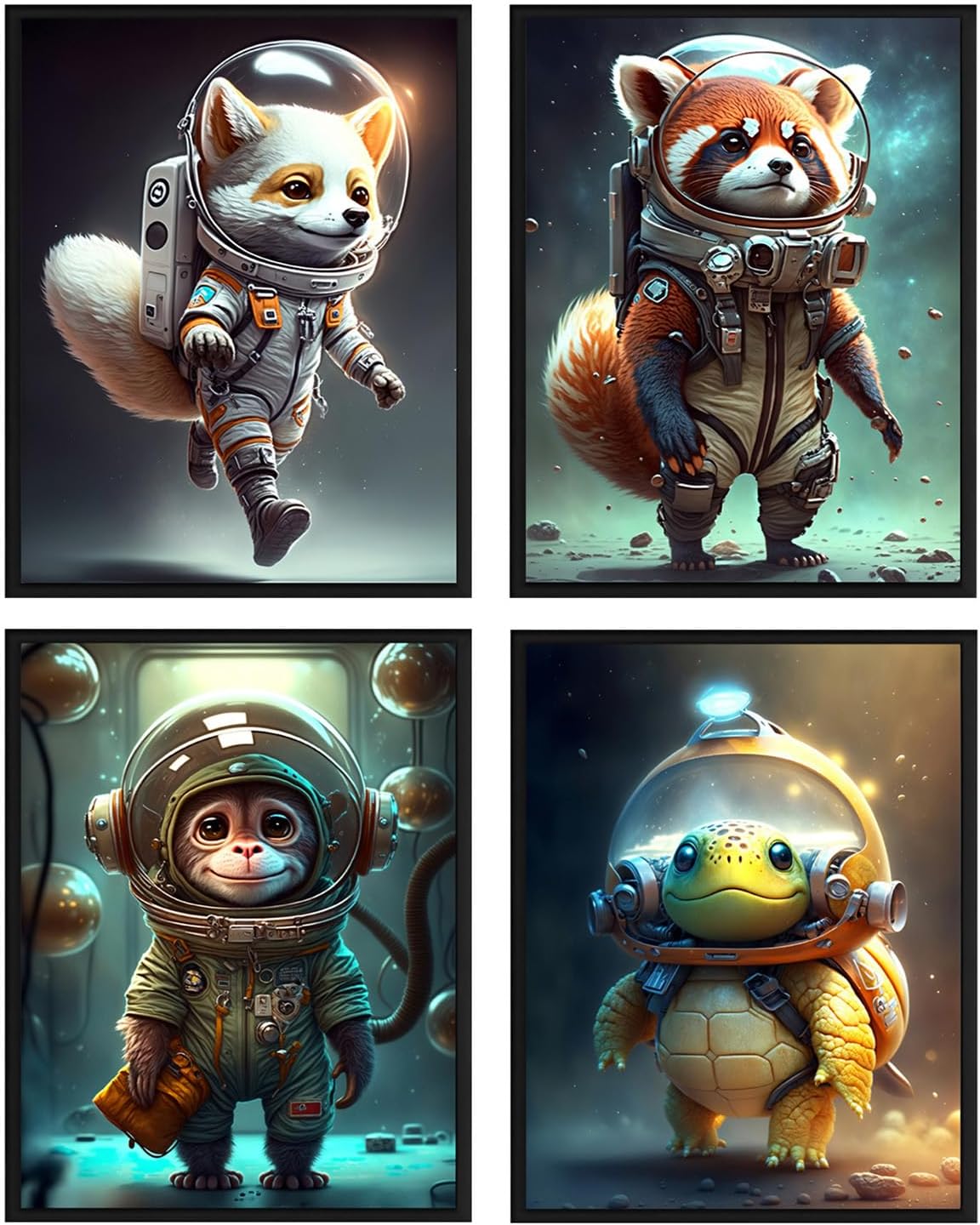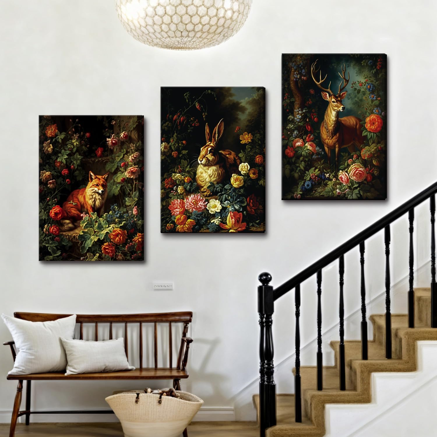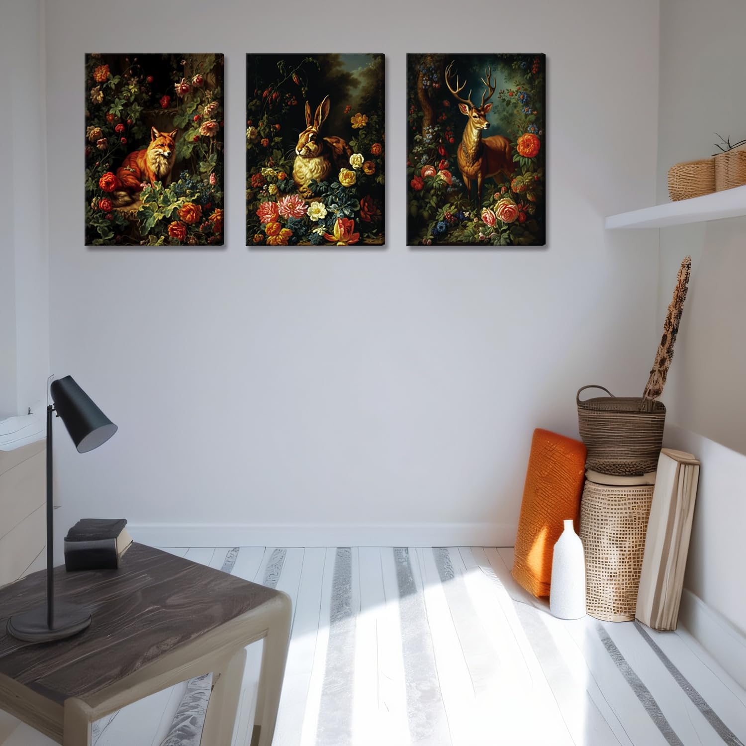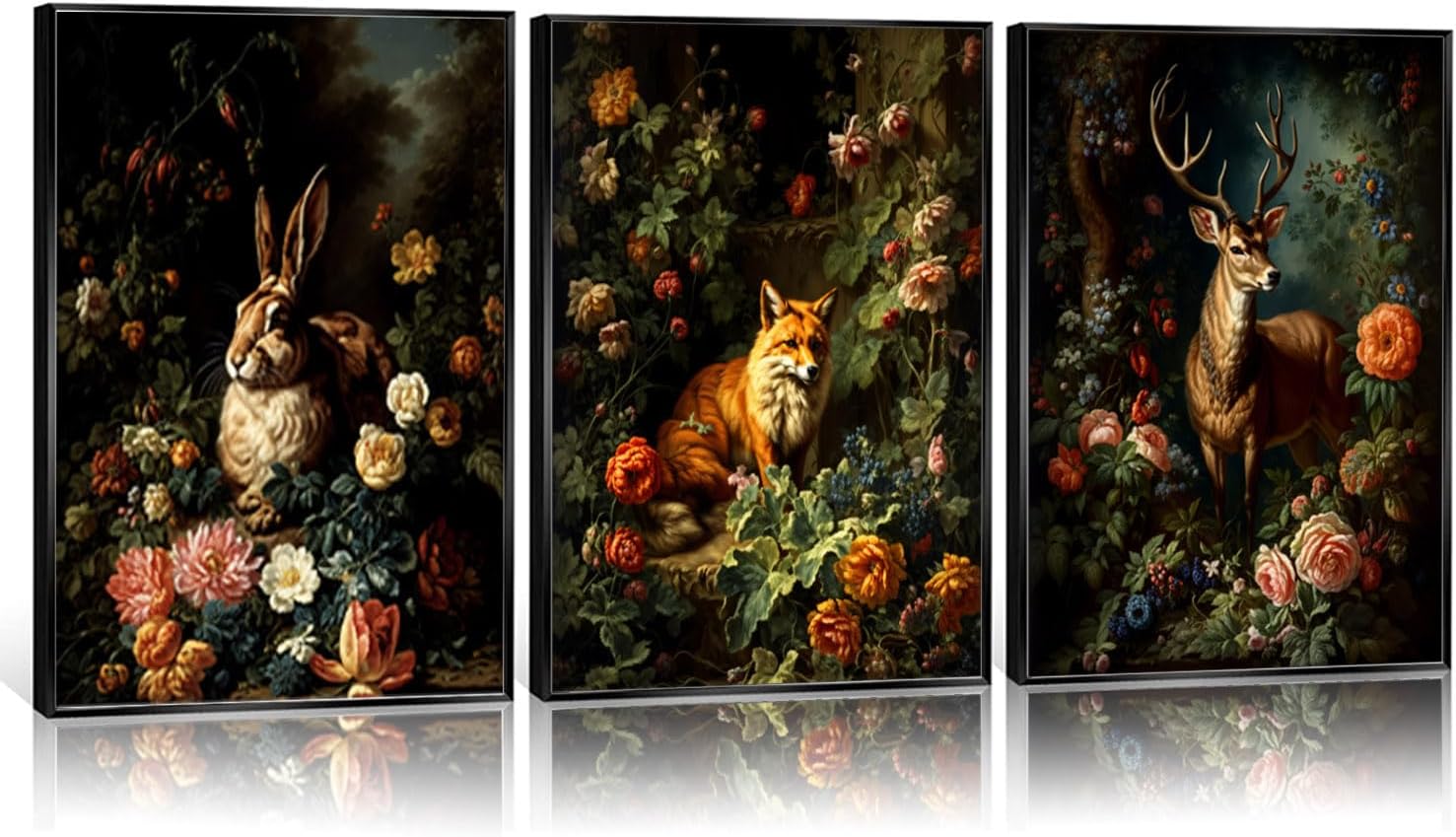 Forest Animal Wall Art ready to hang .canvas wrapped wood frame, includes hanging accessories.