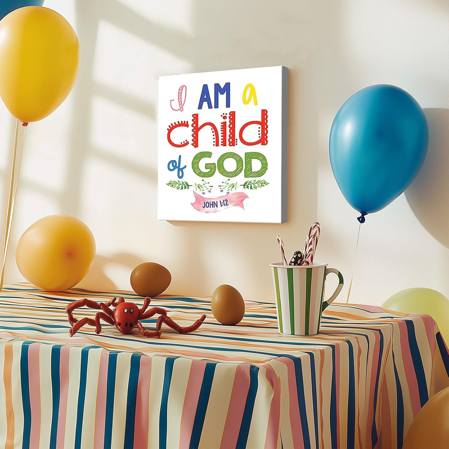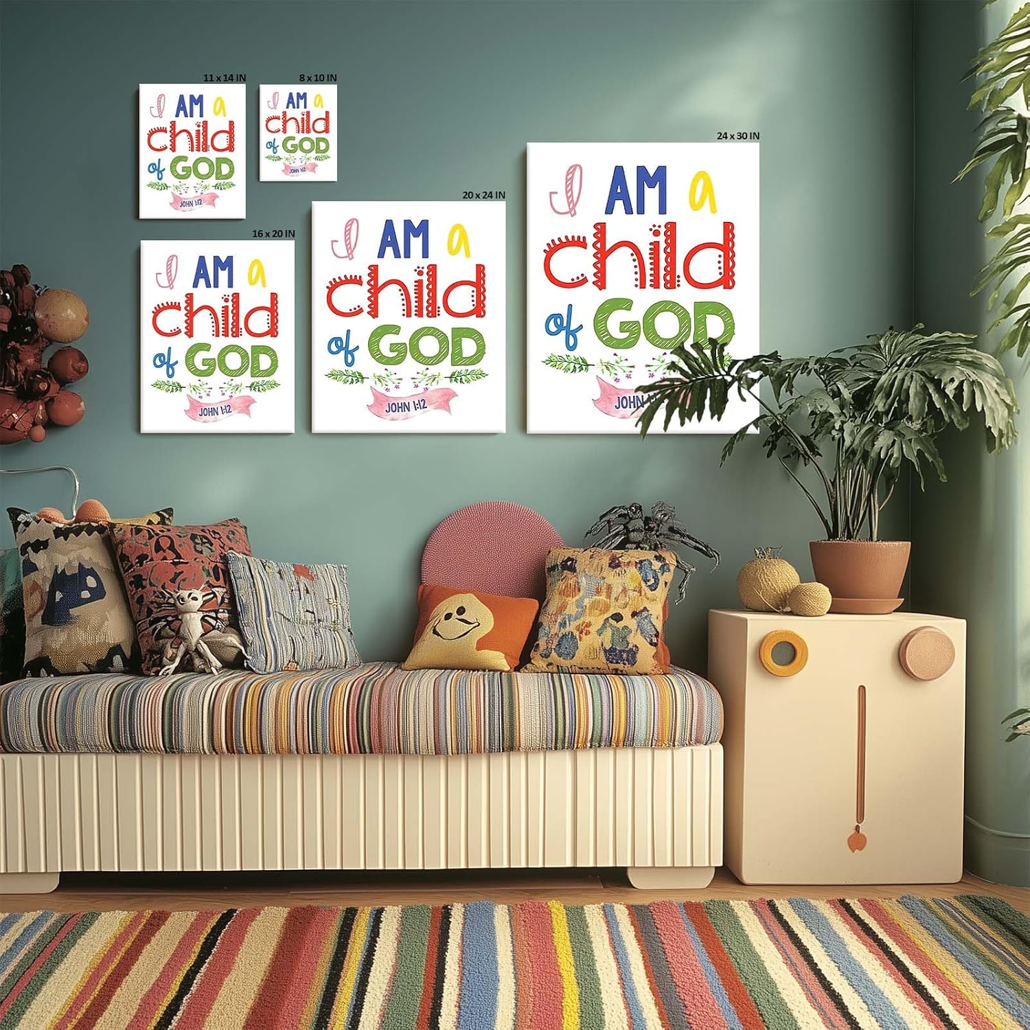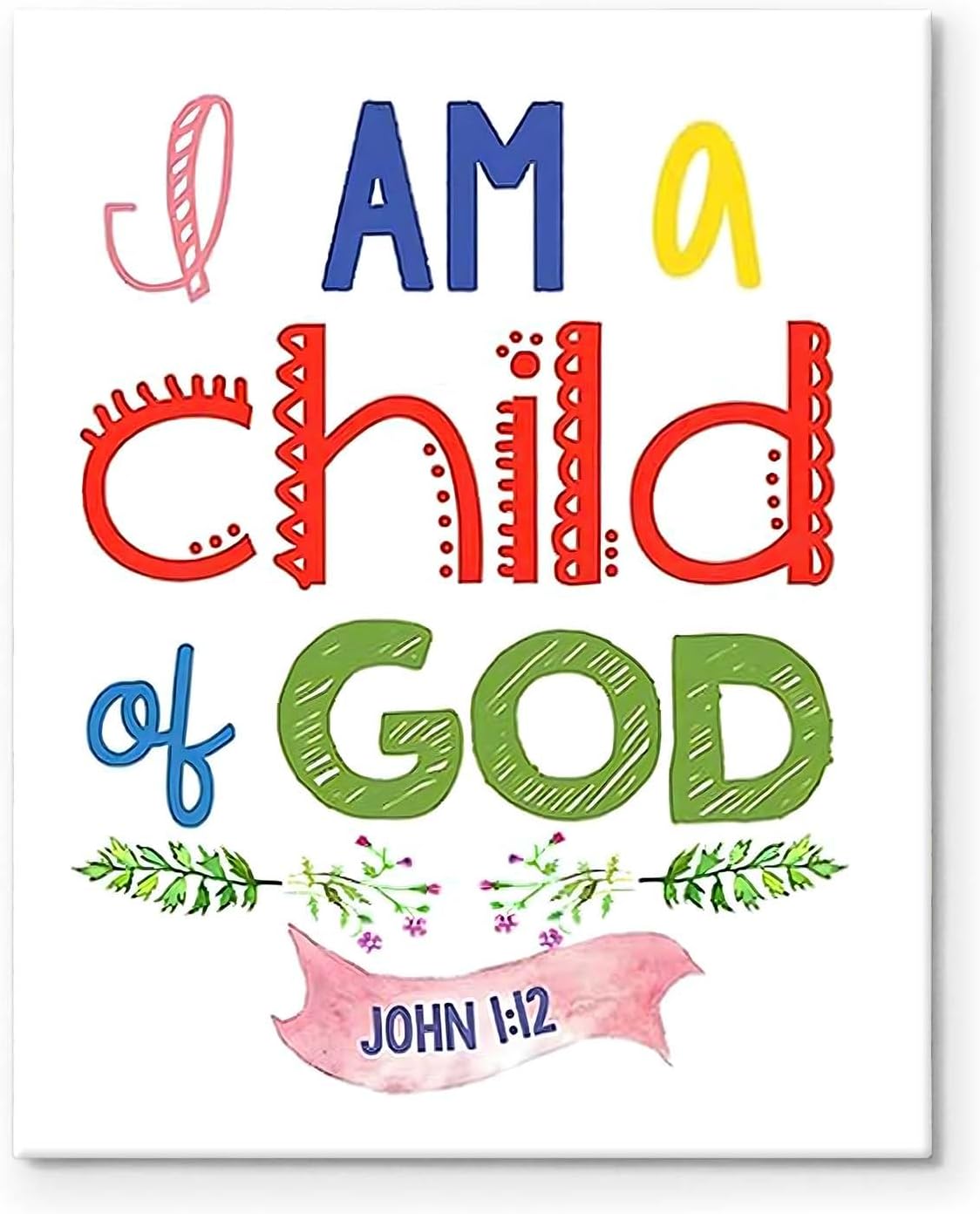 Christian Canvas Wall Art, I Am a Child of God Inspirational Quote Pictures Print, Religious Wall Painting Decor for Home, Church, and Office, John 1:12 Bible Verse Framed Artwork 24″ x 30″