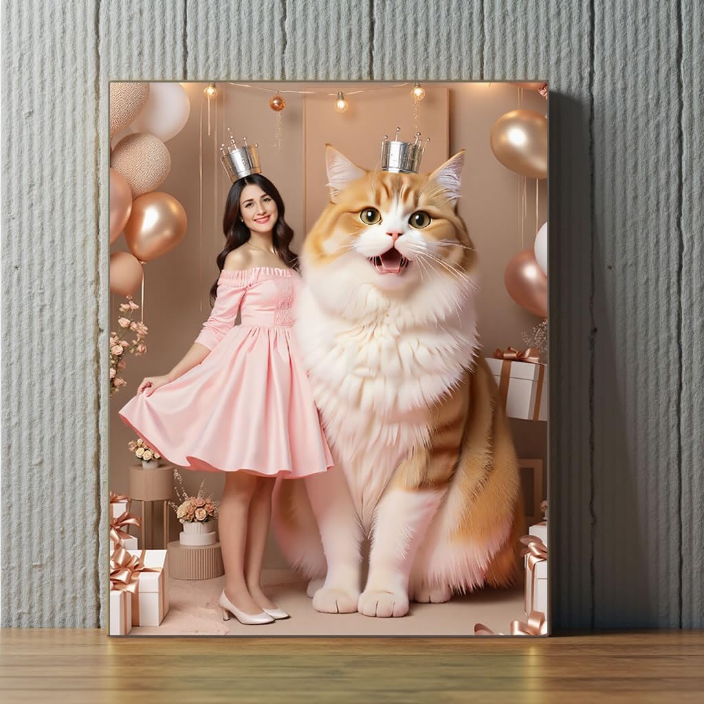 Custom Pet Portrait Wall Art Personalized Cat Poster Canvas with Owner Personalizadas para Pared Pet Portrait Painting for Room Decor Bathroom Pictures Living Room Bedroom Aesthetic