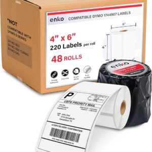 enKo Compatible Zebra 4×6 Label\/Dymo Labels 1744907 (4 x 6) for Dymo Labelwriter 4XL Shipping Zebra Direct Thermal Printer (8 Rolls, 1760 Labels)