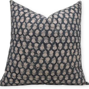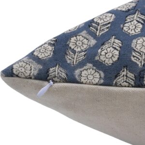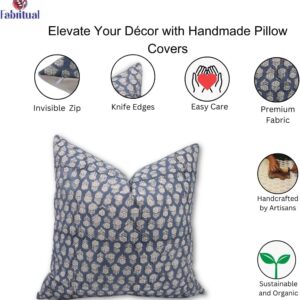 Fabritual Throw Home Decorative Blue 16×16 Inches Cushion Case Perfect for Living Room Sofa, Couch Handmade Block Print Pillow Cover Farmhouse, Gift Summer Cotton Fabric Room Accent, Tulsi Buti