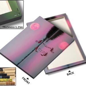 Flamingos Canvas Wall Art, Pink Flamingos at Sunset Pictures Print, Elegant Bird Poster Framed Artwork, Nature Inspired Landscape Wall Painting for Living Room and Bedroom Decor 24x30inch