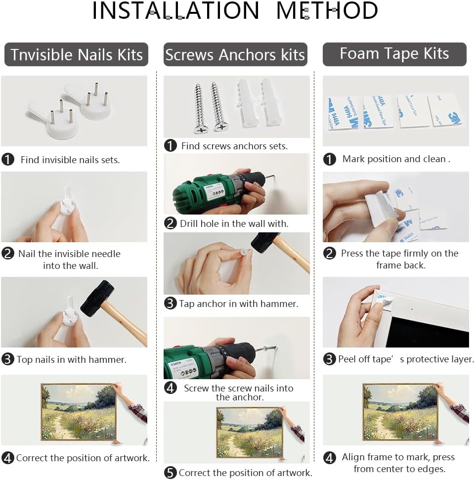 Allow a 0.2-inch size variance. Always refer to the installation guide image before hanging.