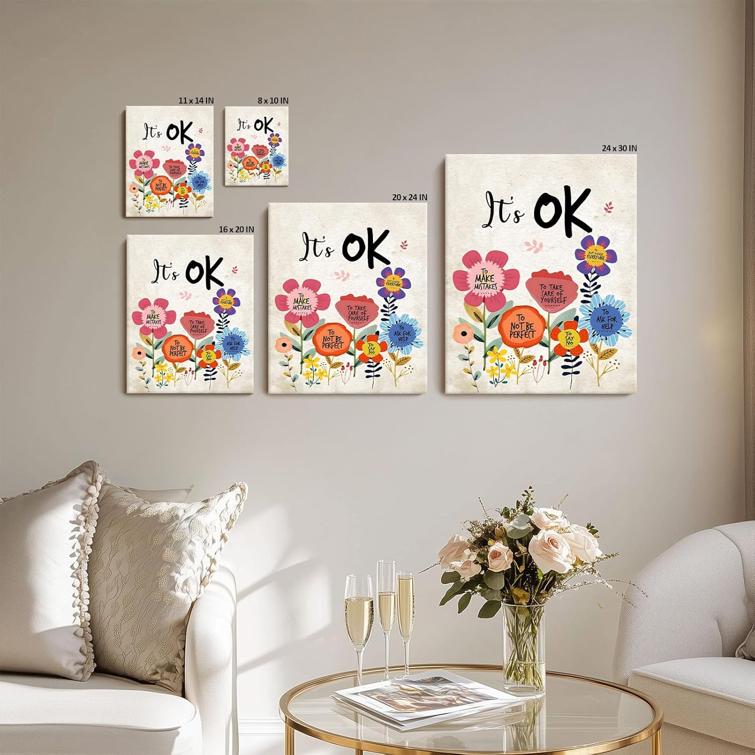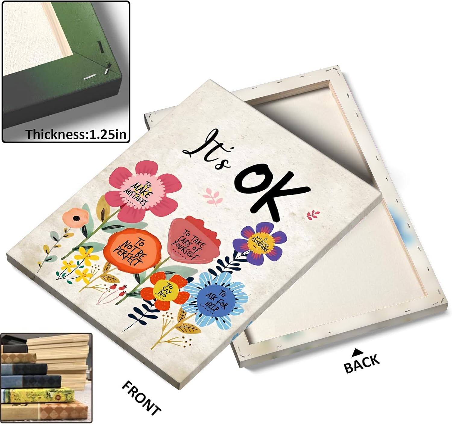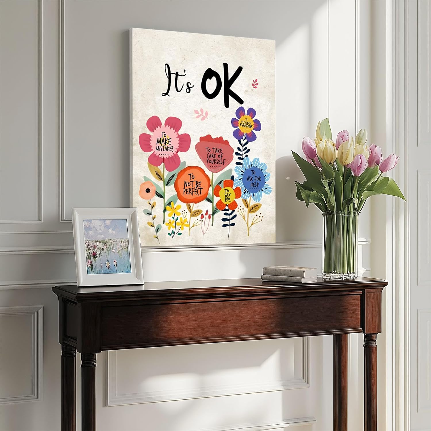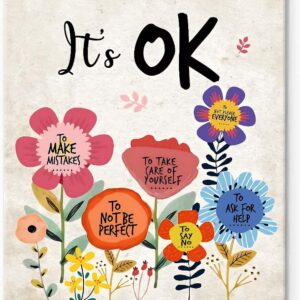 Inspirational Canvas Wall Art, It’s OK to Make Mistakes, Not Be Perfect Pictures Print, Motivational Flower Poster Framed Wall Painting for Home or Office, Self-Care Encouragement Art 16″ x 20″