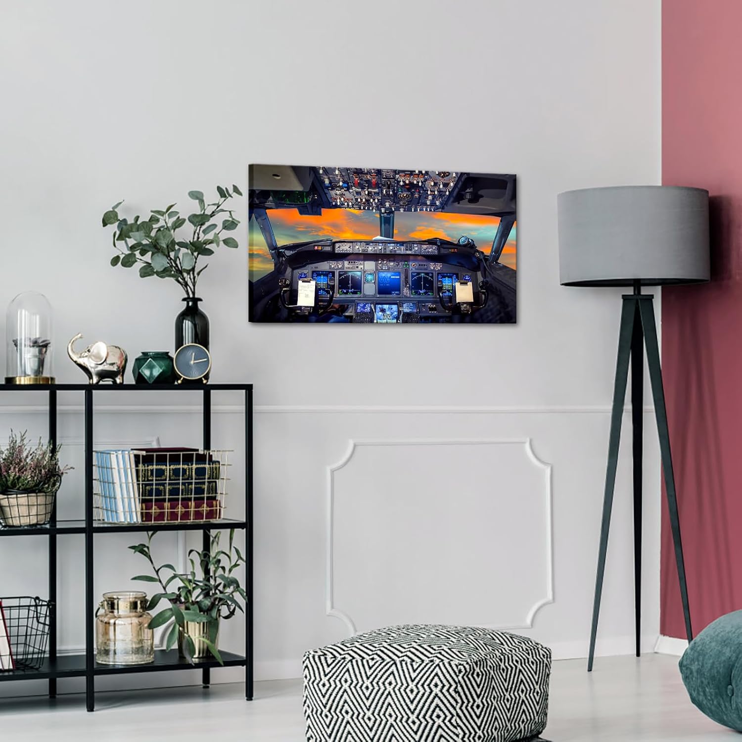 KREATIVE ARTS Canvas Prints Wall Art Airplane Cockpit Flight Deck in Sunset Photo Art Print Plane Poster Modern Home Decor Stretched and Framed Ready to Hang for Office Decorations 20x36inch