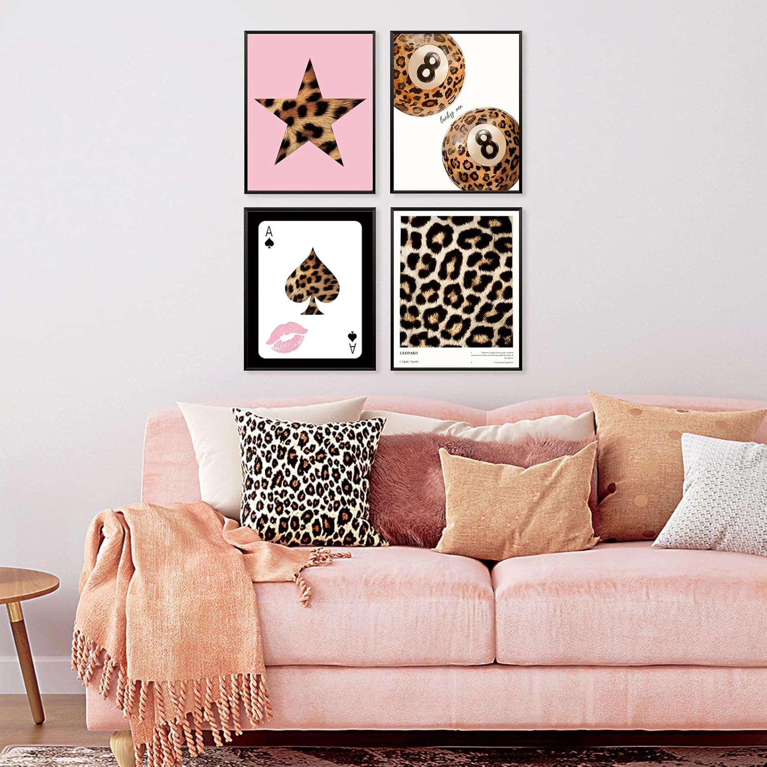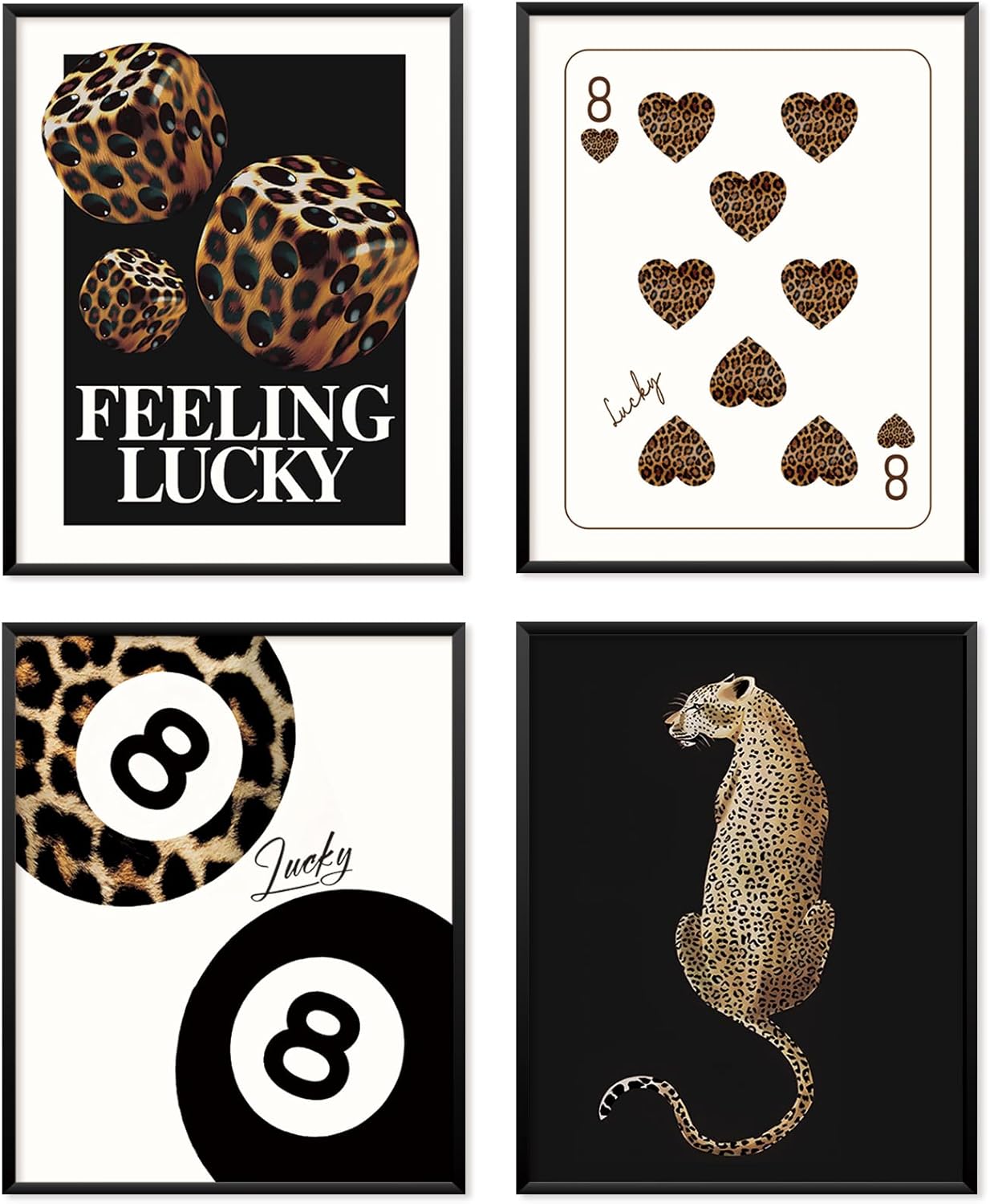 Locomiss Pink Leopard Wall Art Decor Posters, Trendy Y2K Leopard Girly Prints, Pink Funky Retro Cheetah Print Lucky 8 Ball Posters for Teen Girls Room College Dorm Decor, Set of 4 (8×10 Unframed)