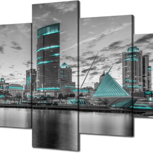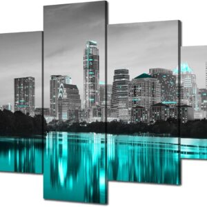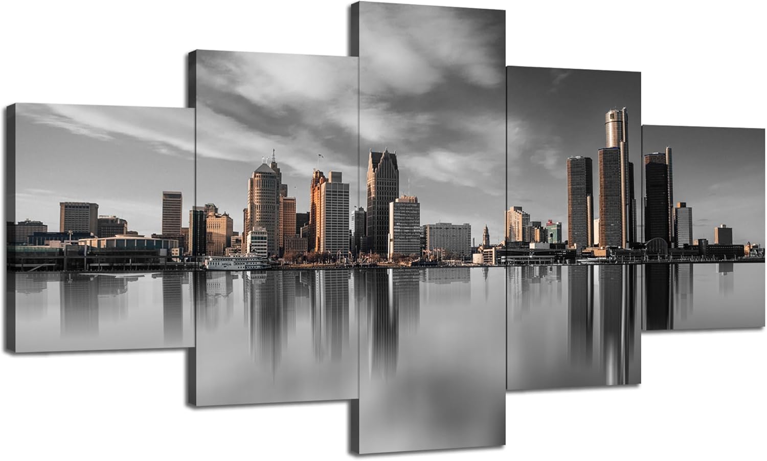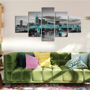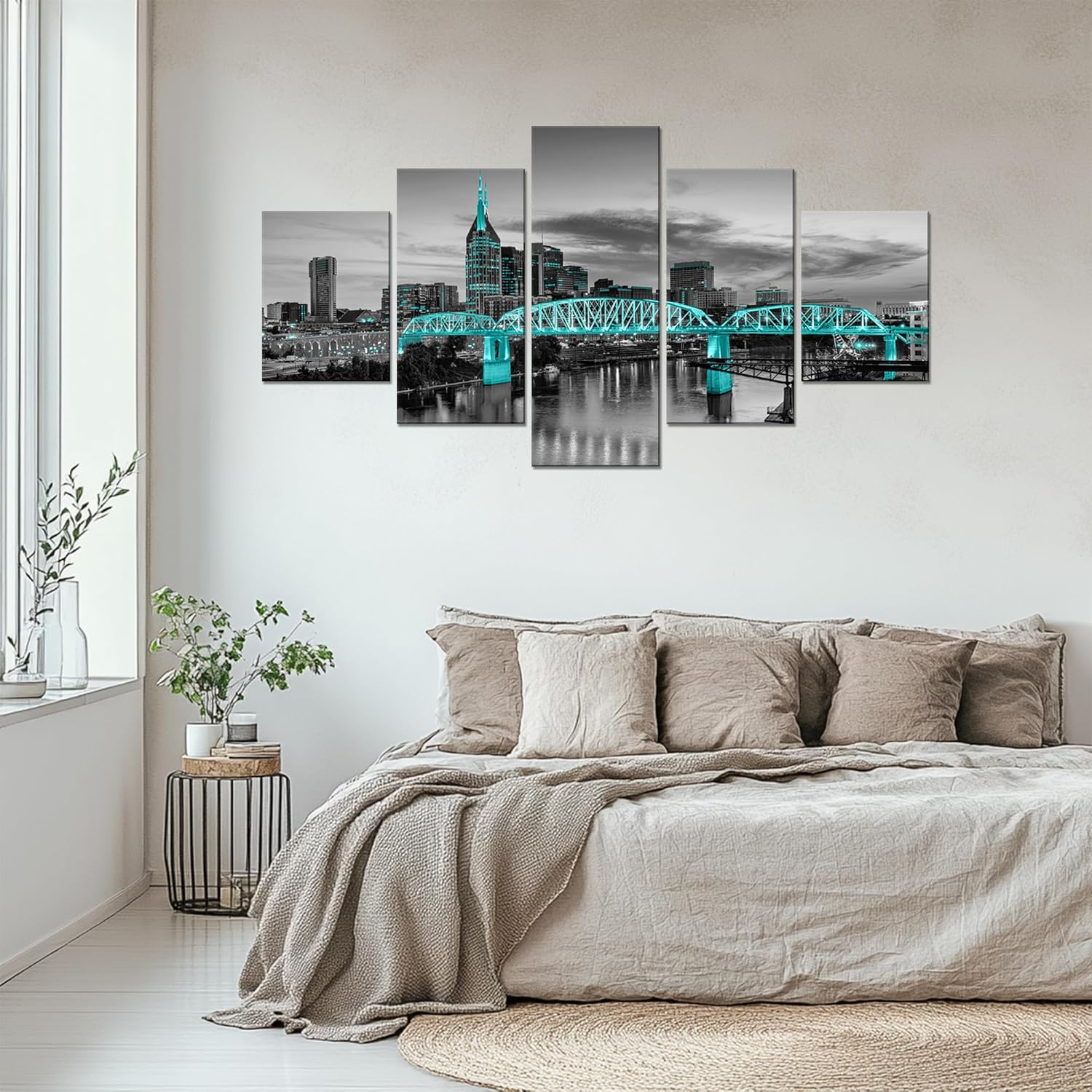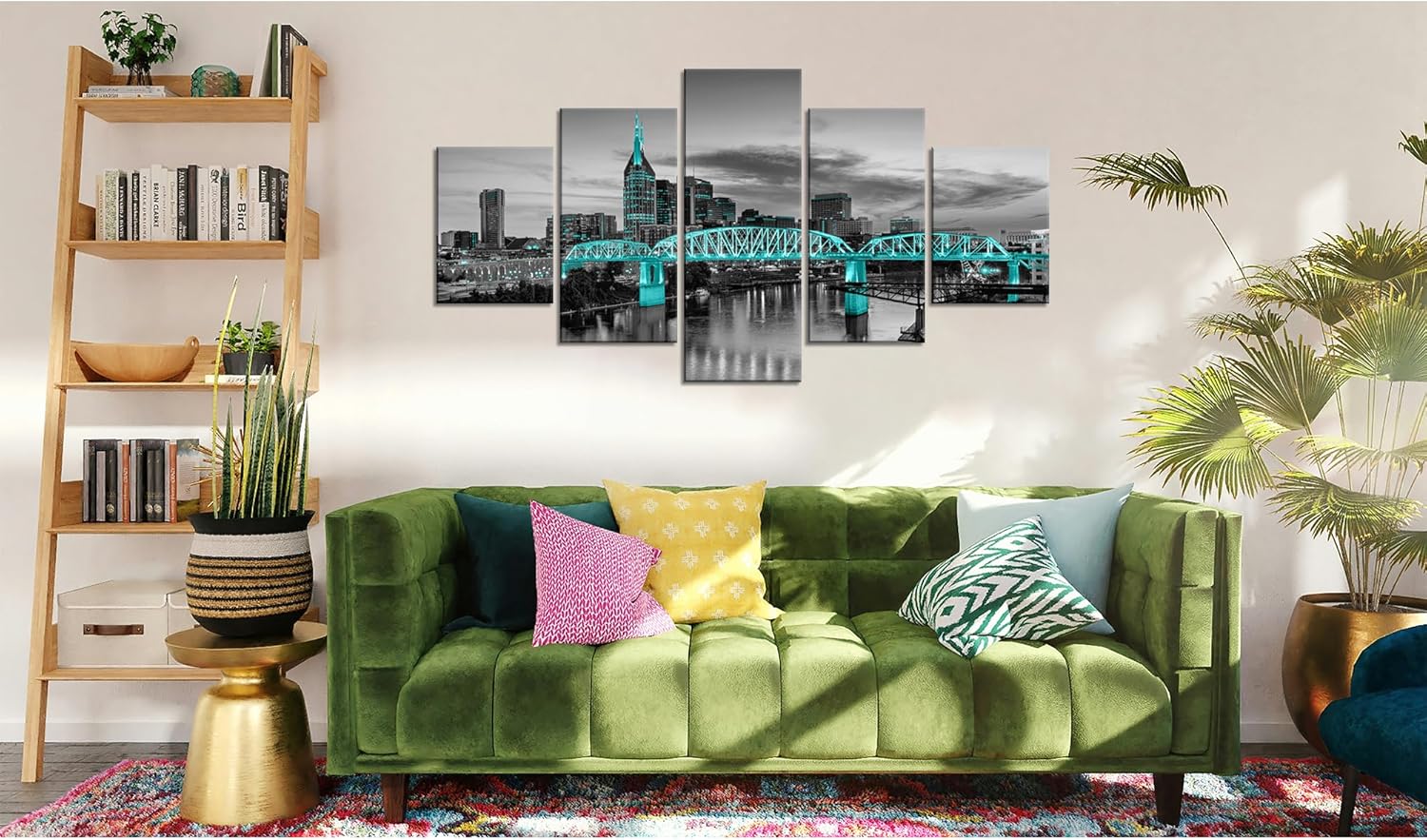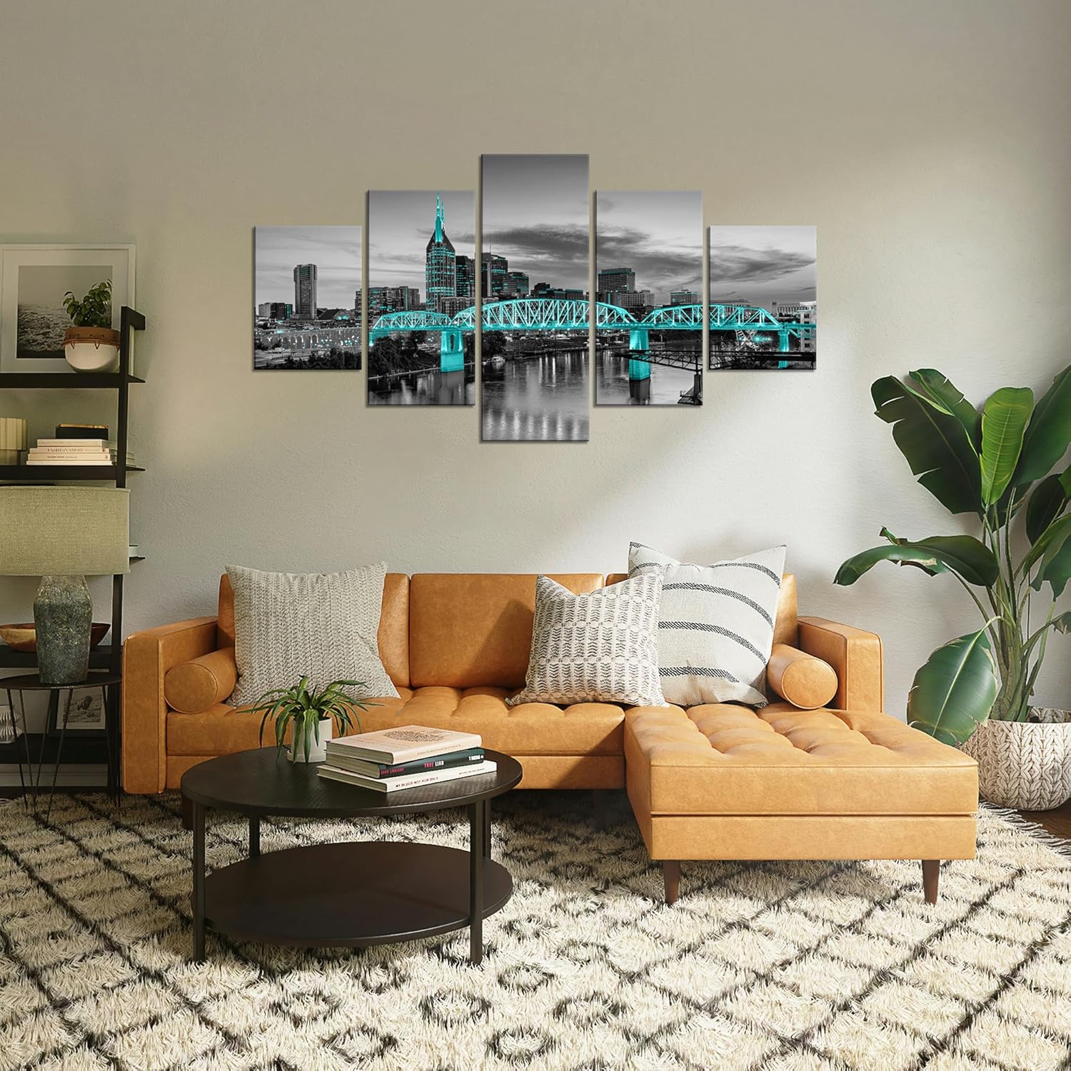 Nashville Canvas Wall Art Tennessee Nashville Skyline Wall Decor Nashville TN City Picture Print Black and White Poster Painting Stretched Frame Home Living Room Decoration(60×32 inches)