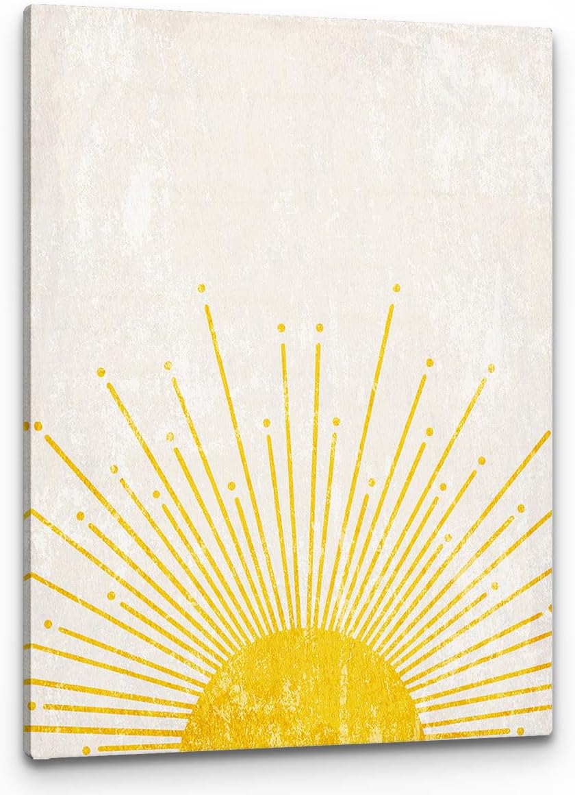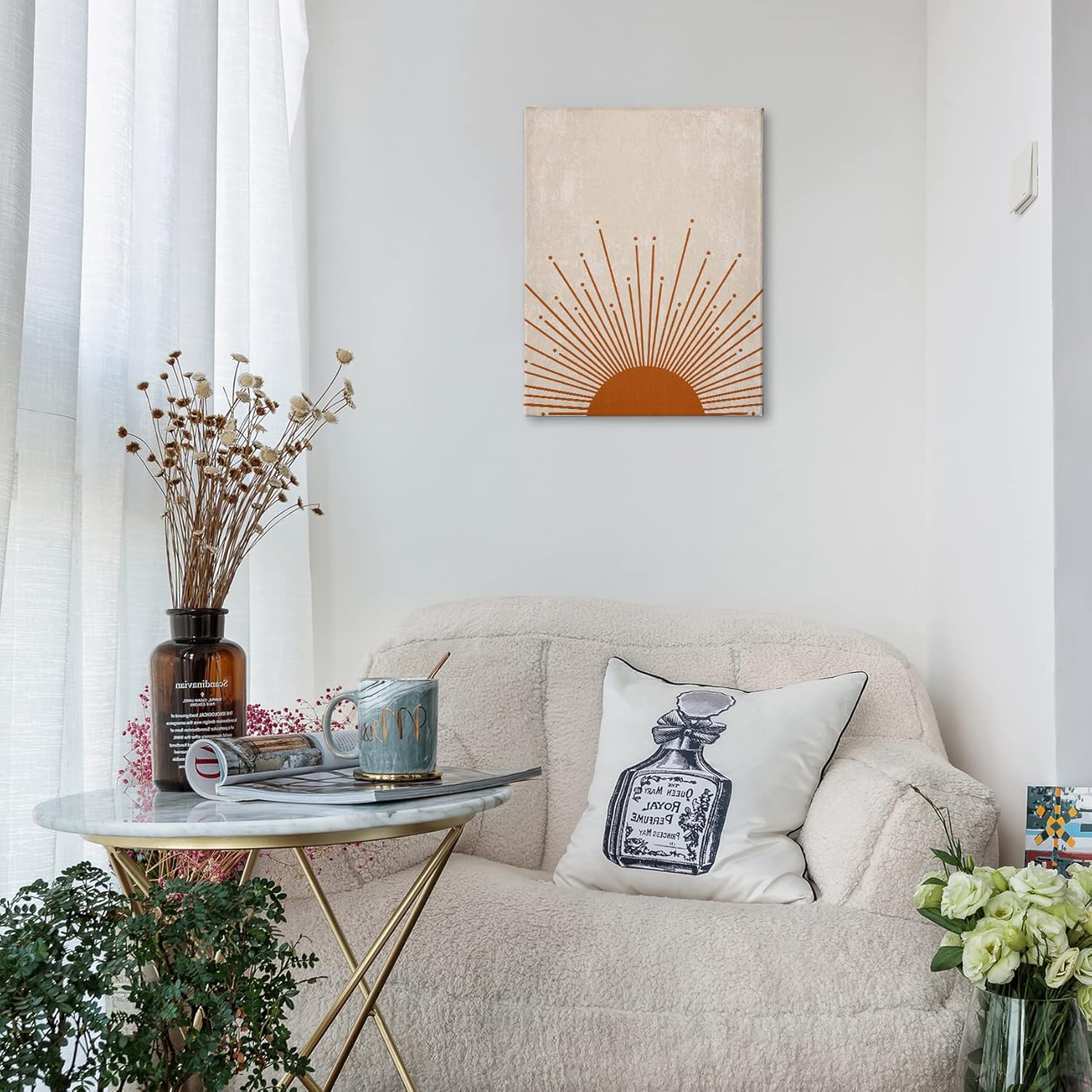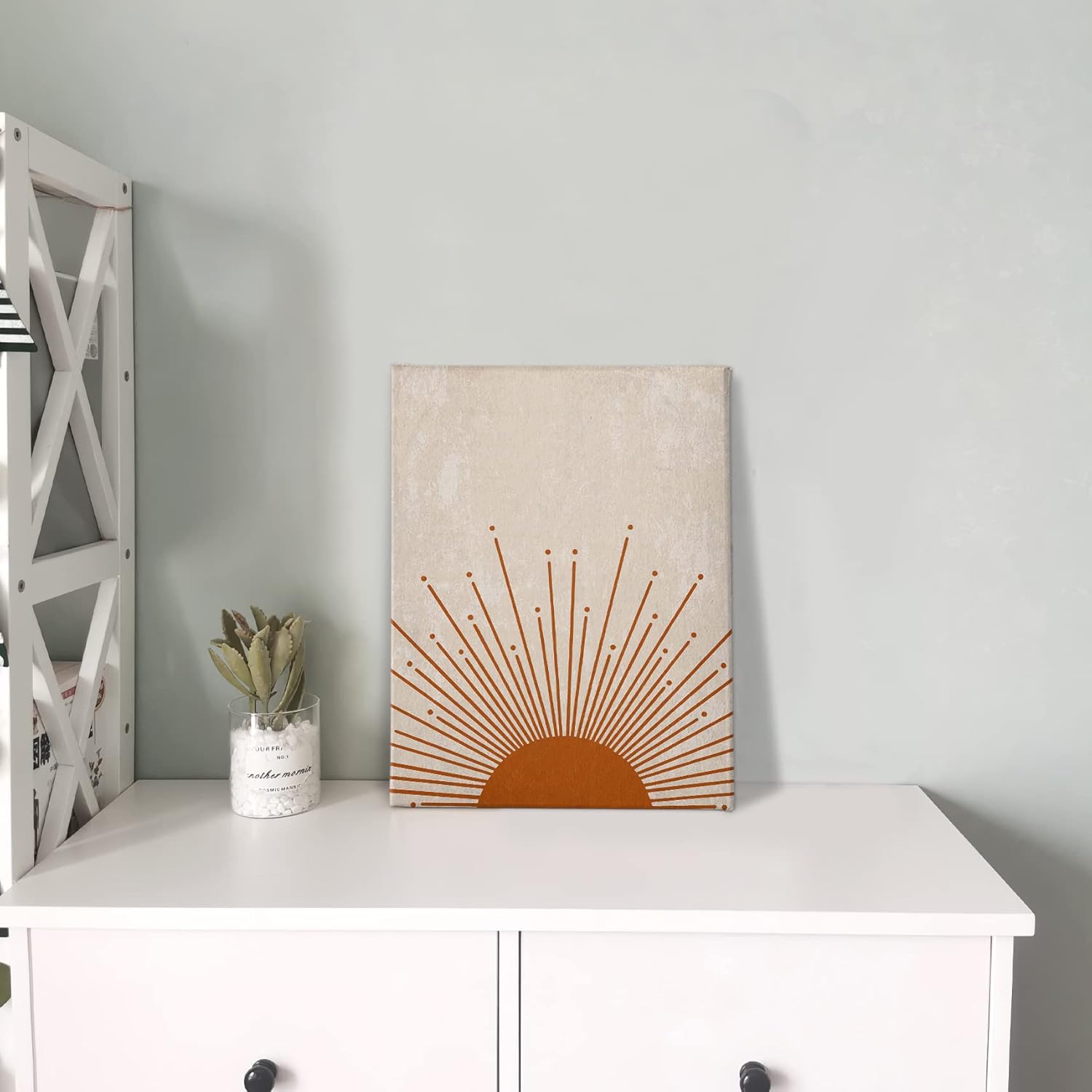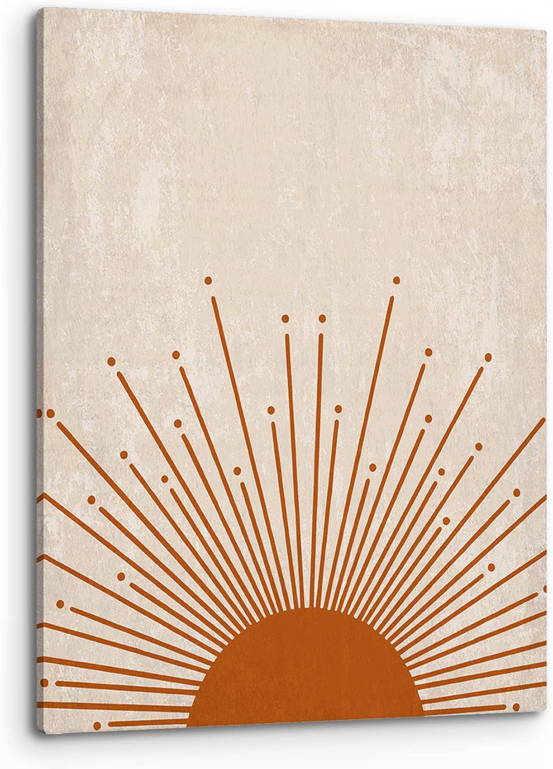 PHAMTE Boho Rustic Orange Sunset Sunrise Sun Rays Print Framed Canvas Painting Artwork for Home Bathroom Girls Room Kitchen Office Decor (11×14 Inch)