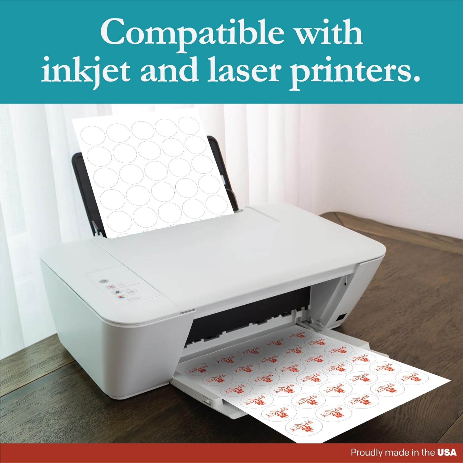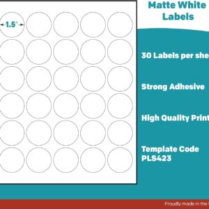Premium Label Supply White Sticker Round Labels \u2013 1.5″ Circle \u2013 Laser\/Inkjet Compatible \u2013 (30 per Sheet), 25 Sheets \u2013 750 Total Adhesive Labels