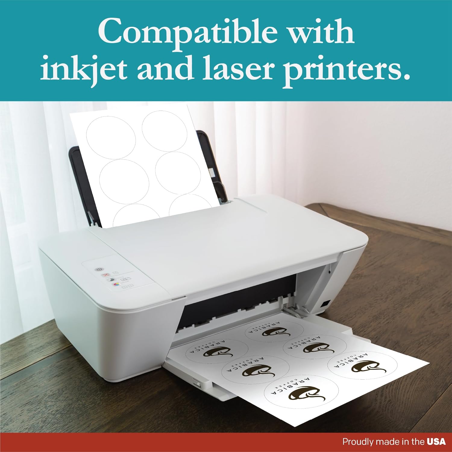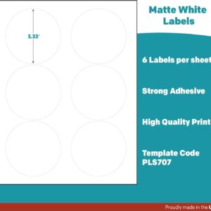 Premium Label Supply White Sticker Round Labels \u2013 3.33″ Circle \u2013 Laser\/Inkjet Compatible \u2013 (6 per Sheet), 100 Sheets \u2013 600 Total Adhesive Labels