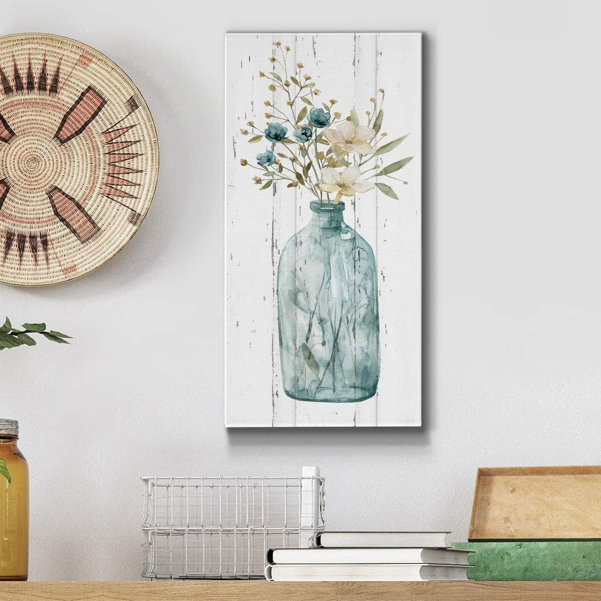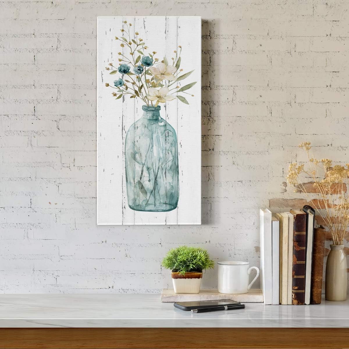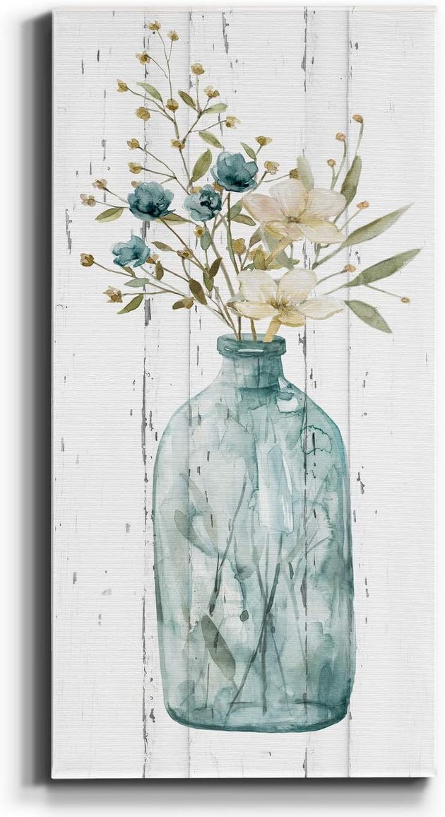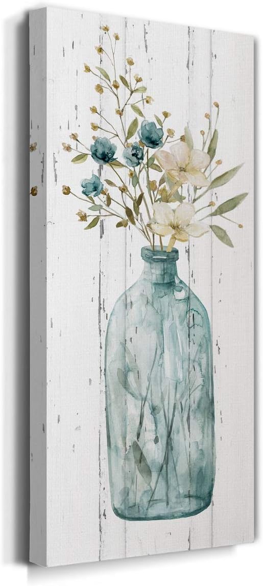 Renditions Gallery Canvas Flowers Wall Art Home Paintings & Prints Elegant Floral Vase Modern Romantic Botanical Bouquet Artwork Decorations for Office Bedroom Kitchen – 8″x16″ LT43
