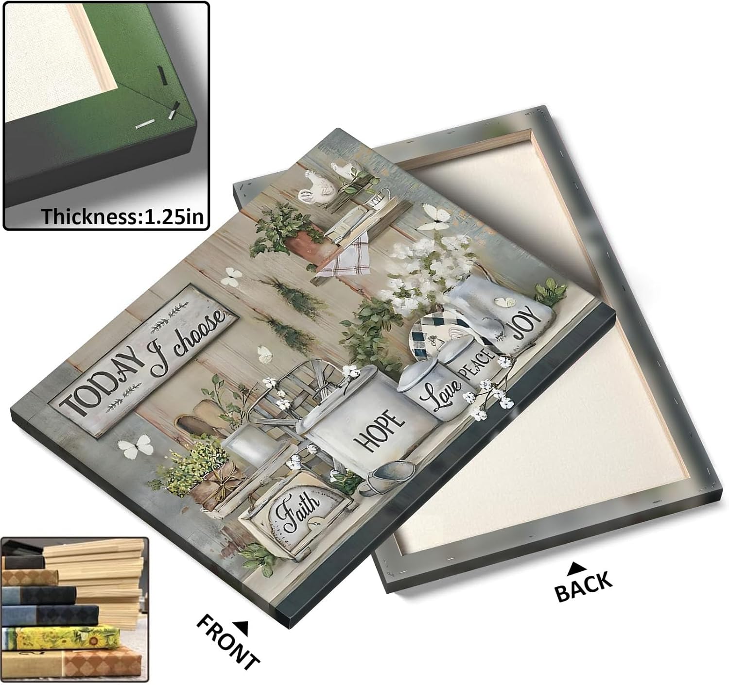 Rustic Inspirational Canvas Wall Art, “Today I Choose Faith, Hope, Love, Peace, Joy” Farmhouse Decor, Floral Print Framed Still Life Painting Artwork for Living Room Bathroom and Kitchen 16″ x 20″