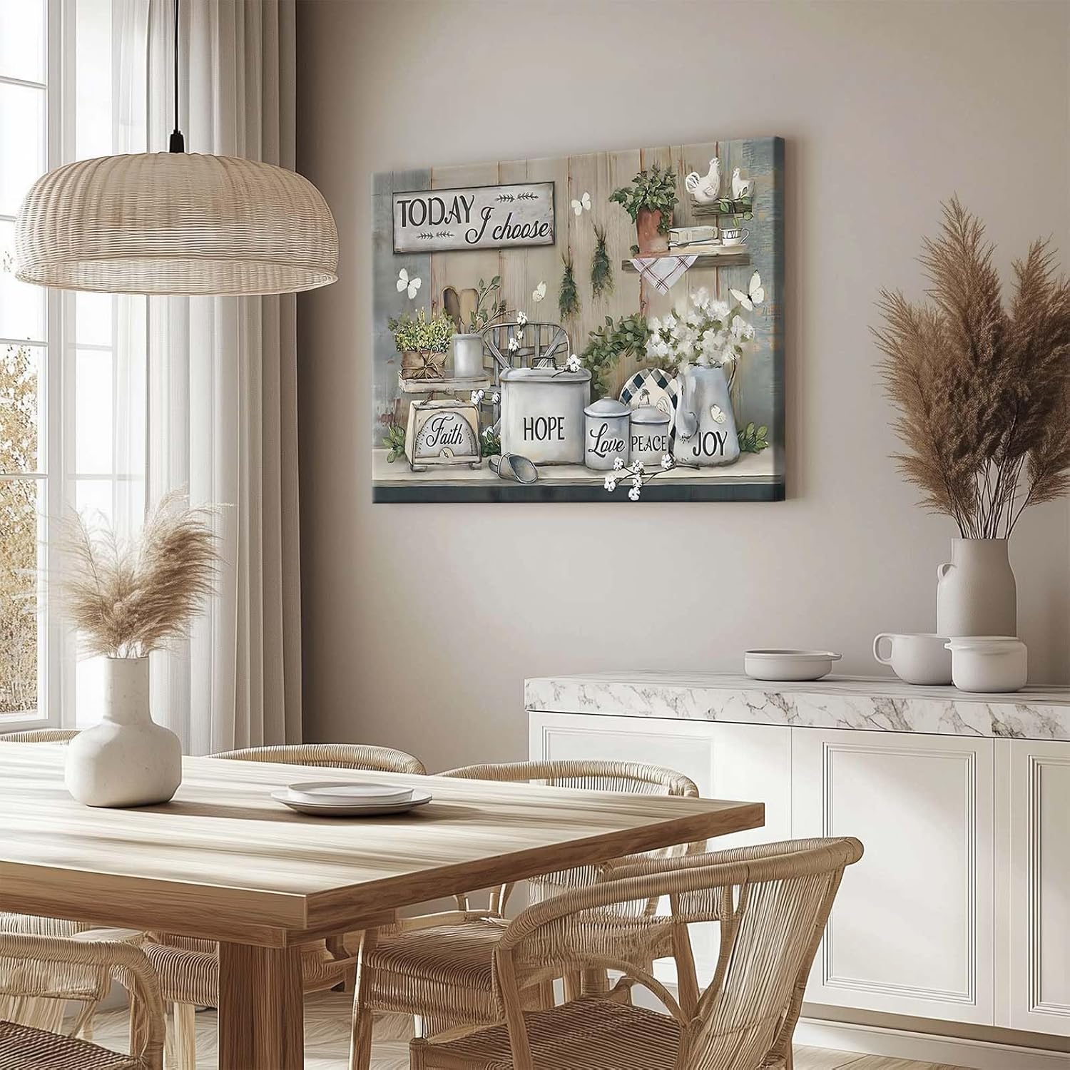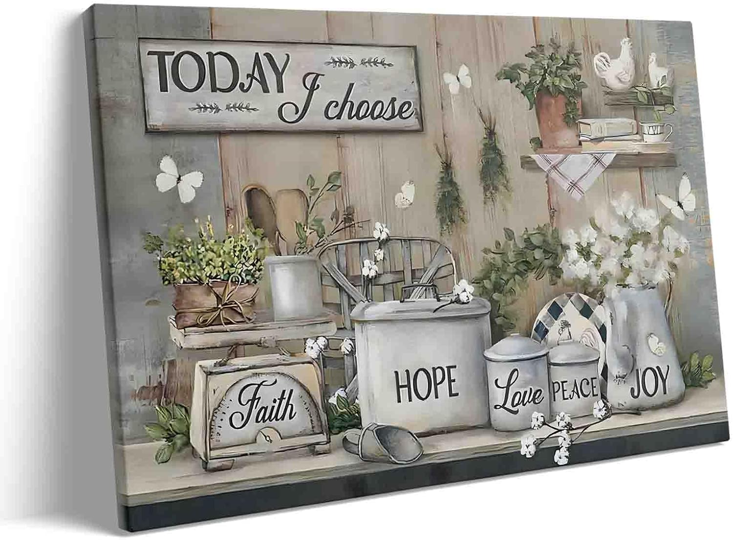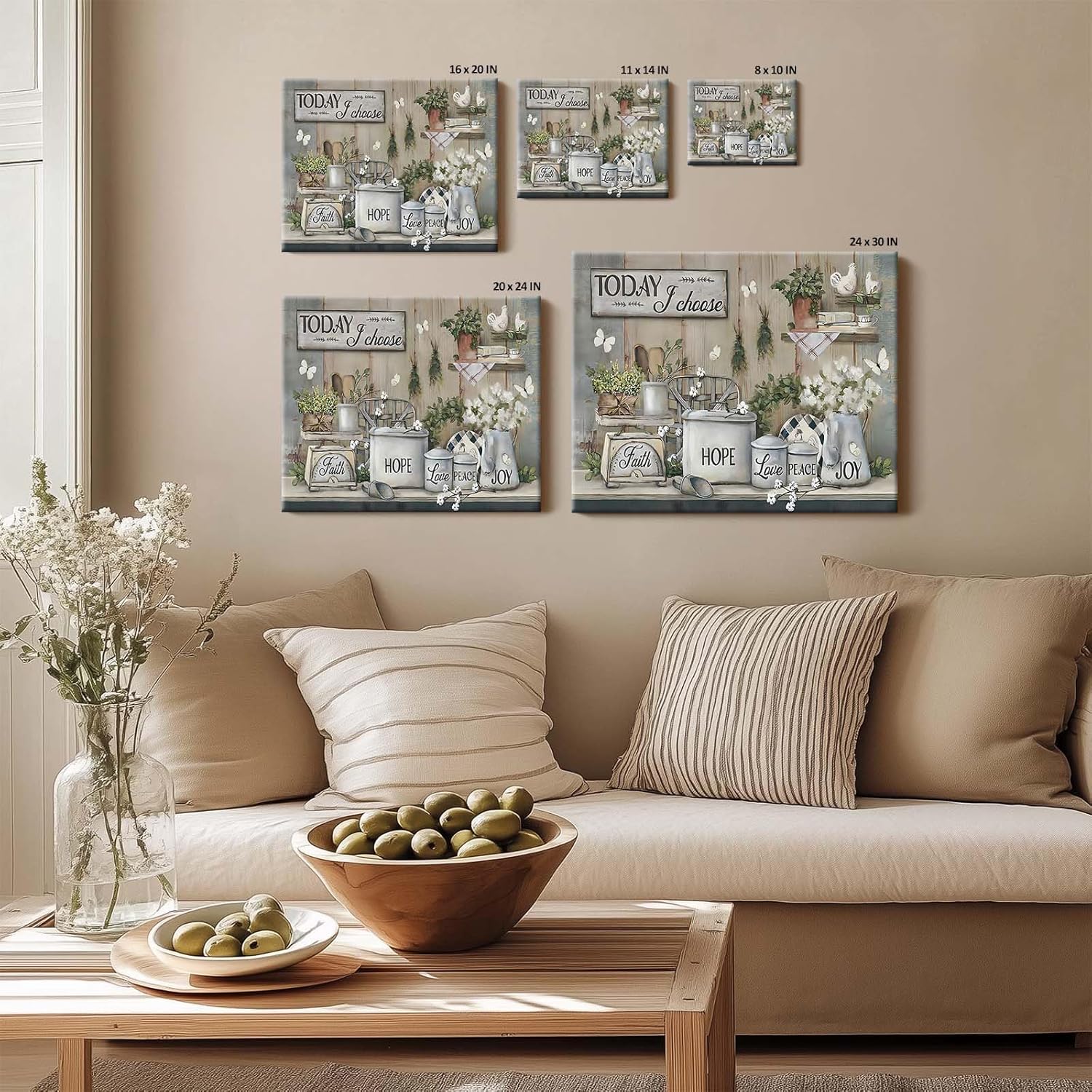 Rustic Inspirational Canvas Wall Art, Today I Choose Faith, Hope, Love, Peace, Joy Farmhouse Wall Decor, Floral Print Framed Still Life Painting Artwork for Living Room Bathroom Kitchen 24″ x 30″