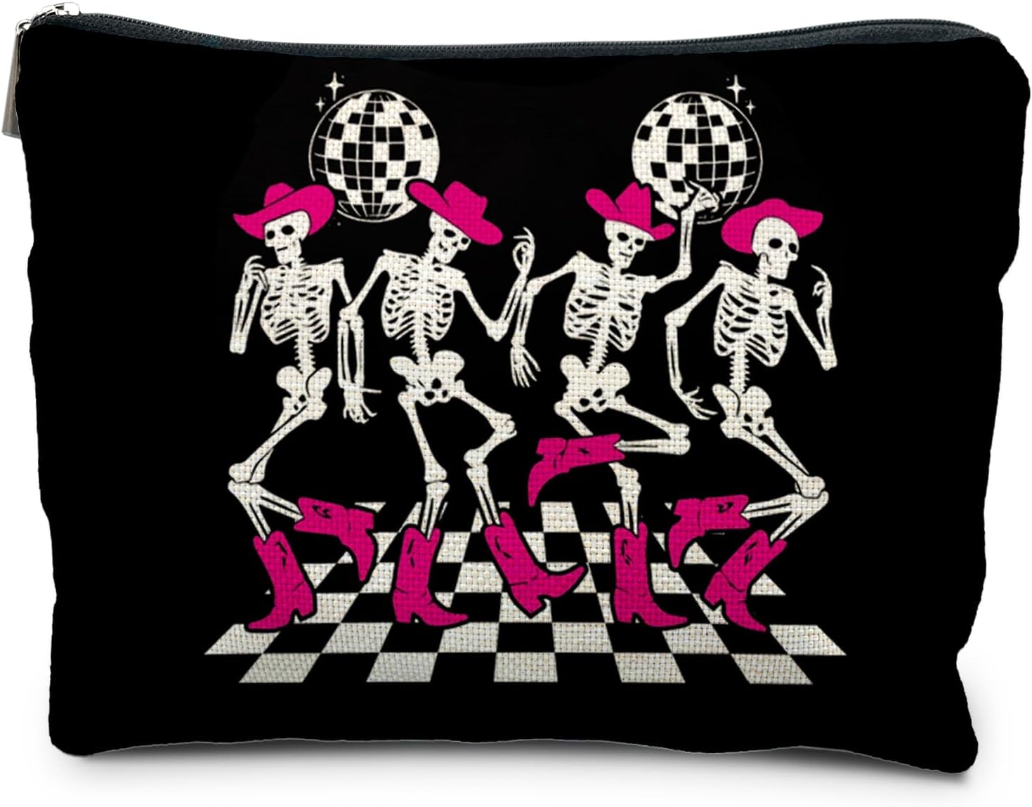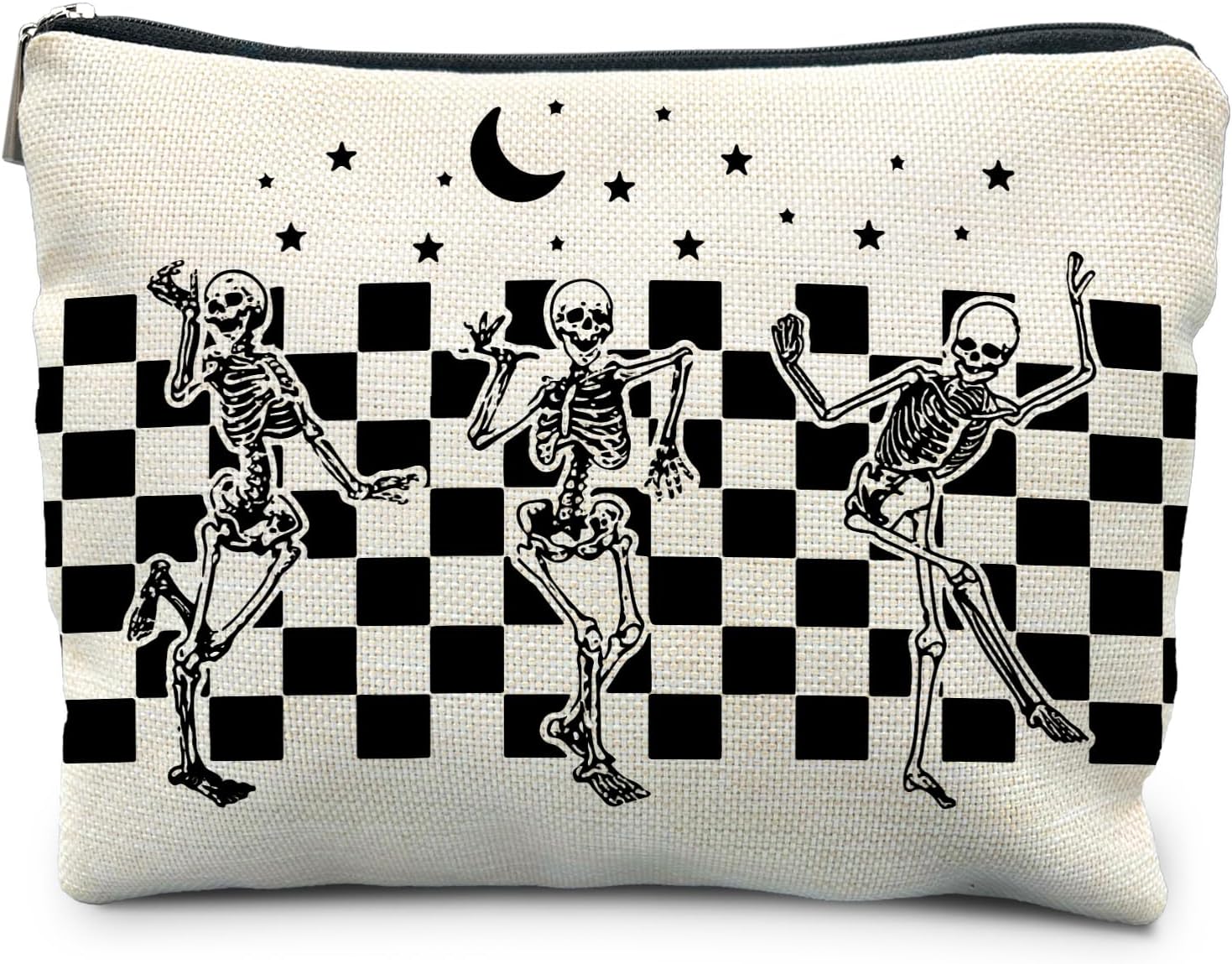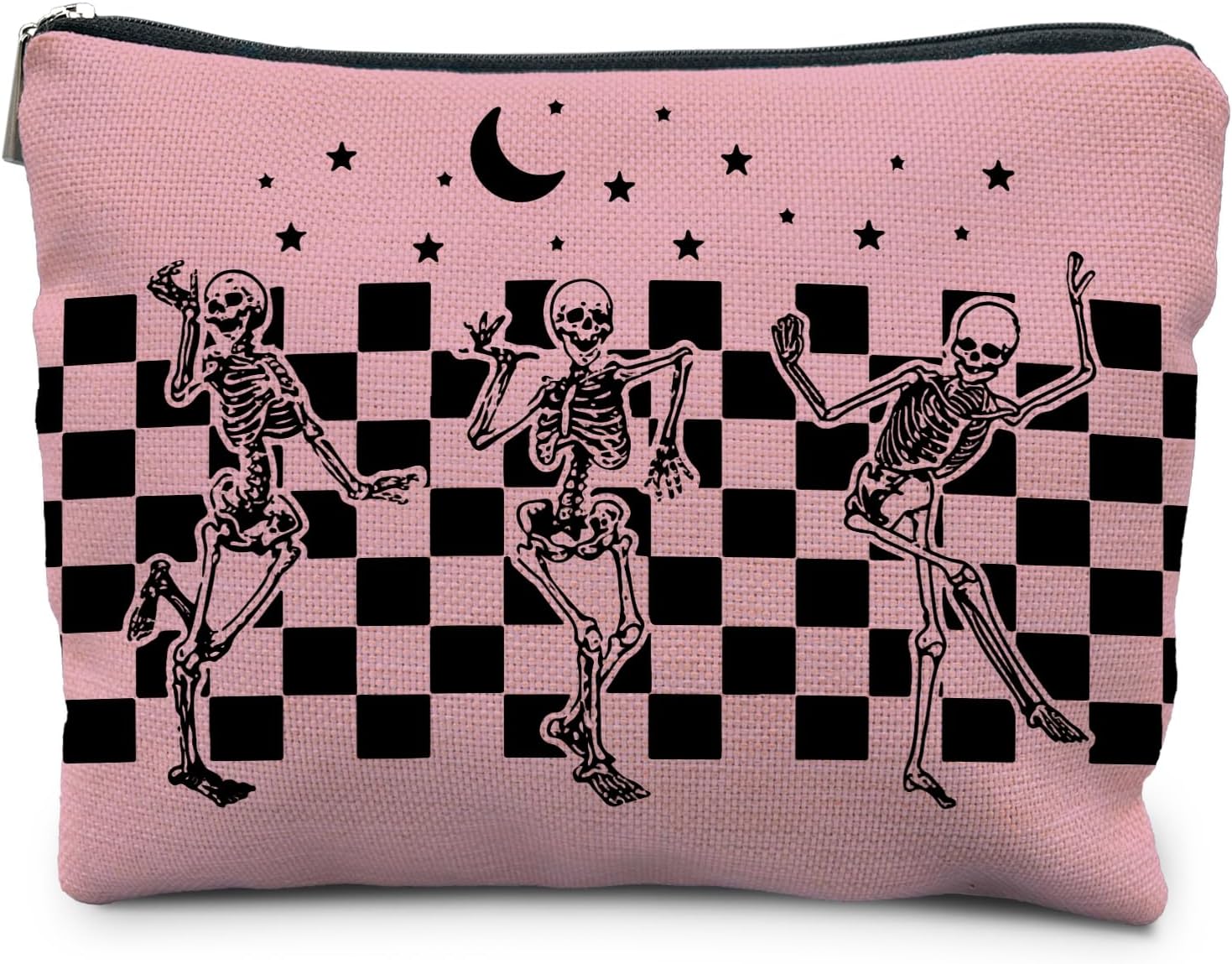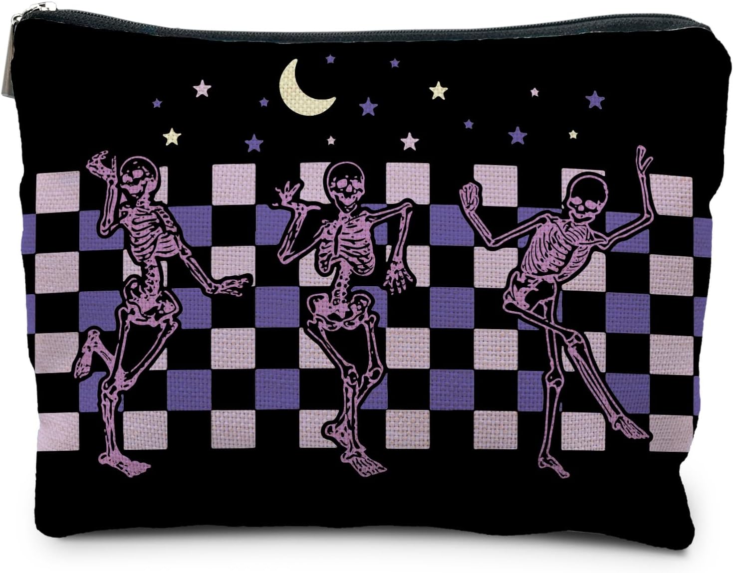 RYYCDOI Gothic Skeleton Makeup Pouch – Halloween & Dark Academia Witchy Accessory, Cool Horror Gift for Women
