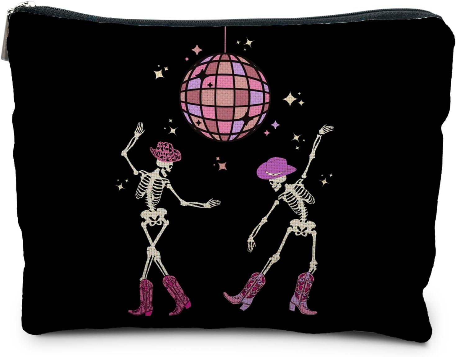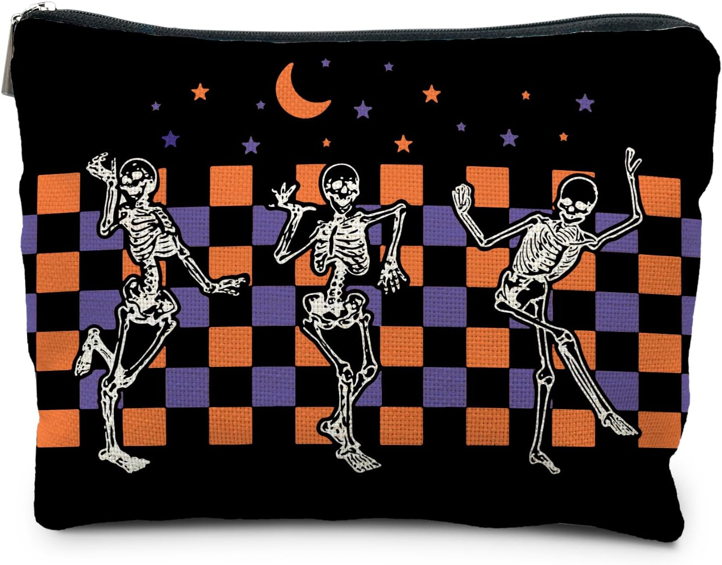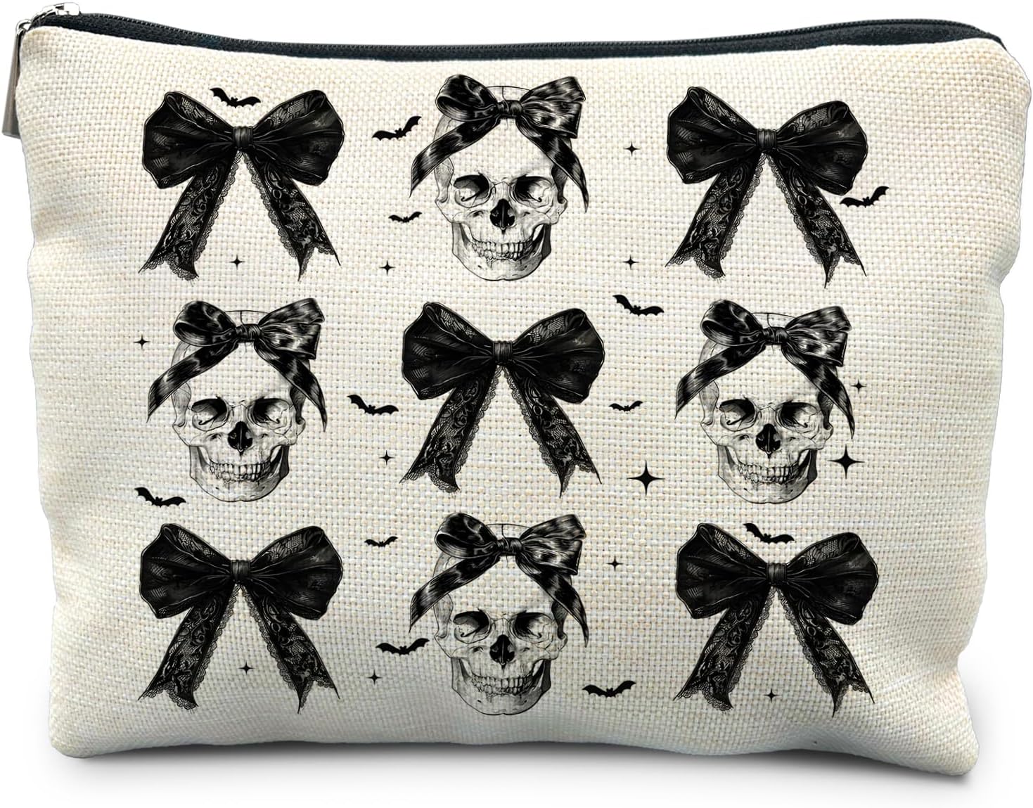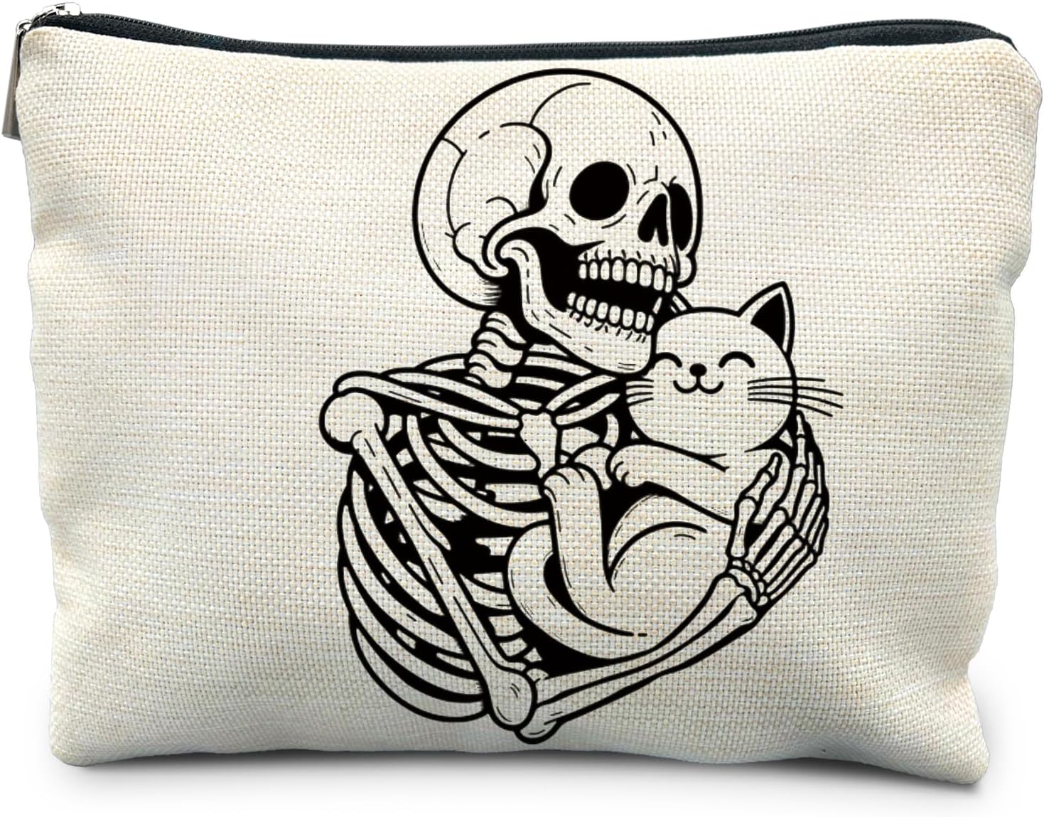 RYYCDOI Gothic Skeleton Makeup Pouch – Halloween & Dark Academia Witchy Accessory, Cool Horror Gift for Women