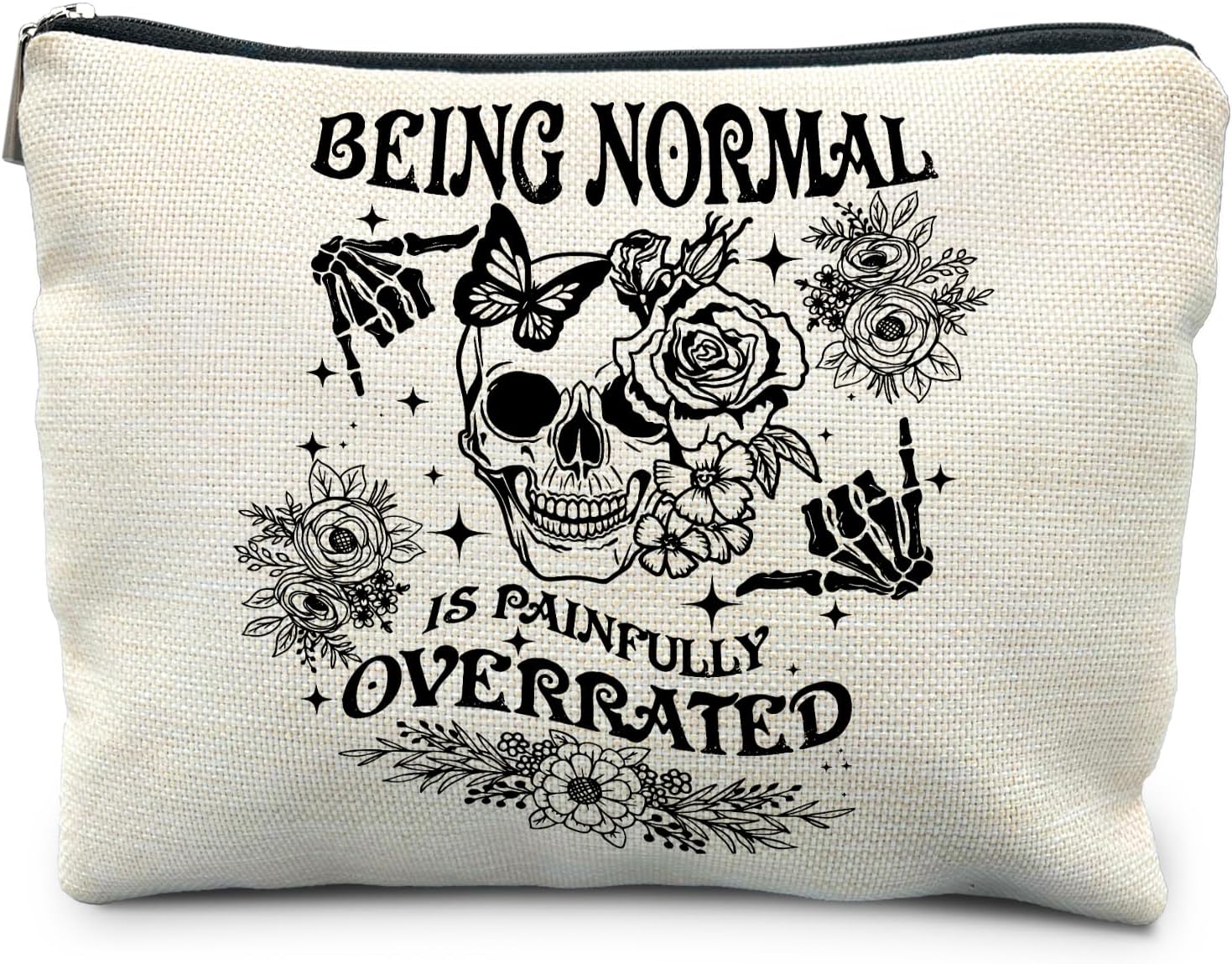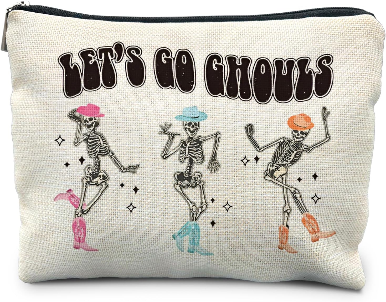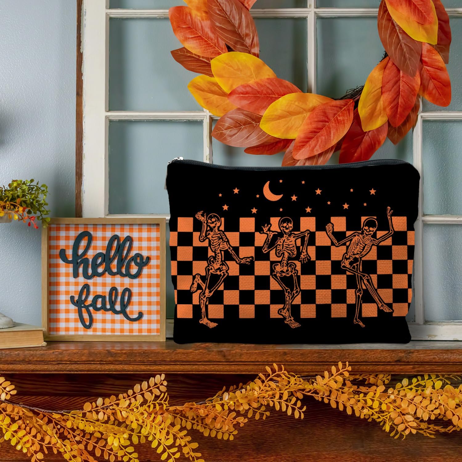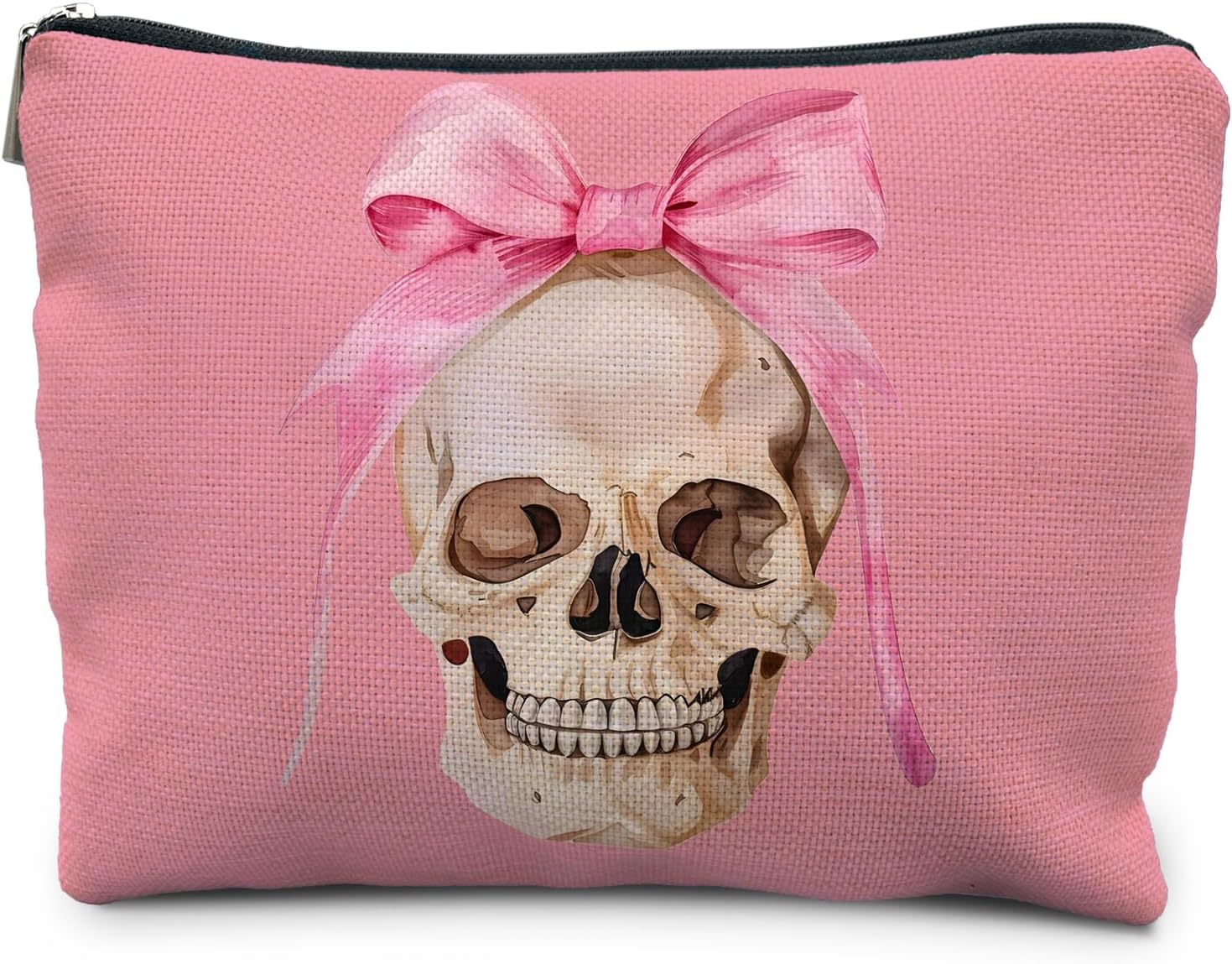 RYYCDOI Gothic Skeleton Makeup Pouch – Halloween & Dark Academia Witchy Accessory, Cool Horror Gift for Women