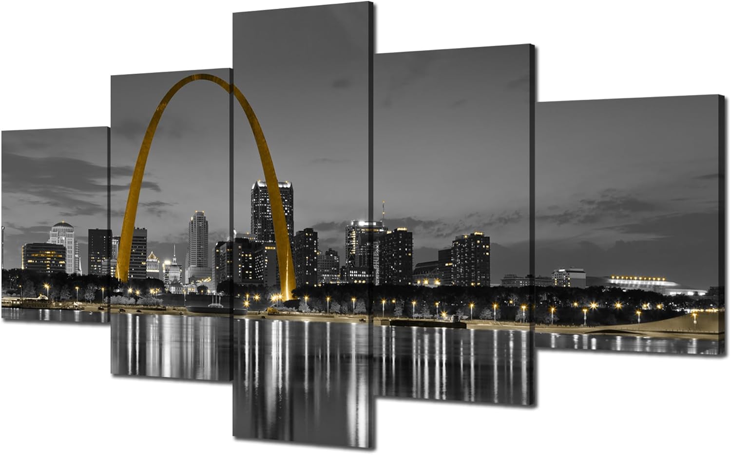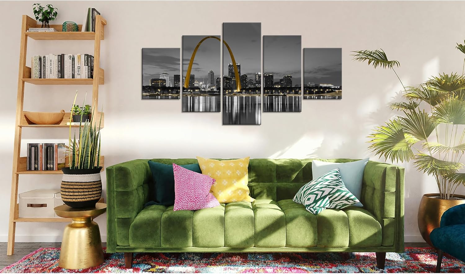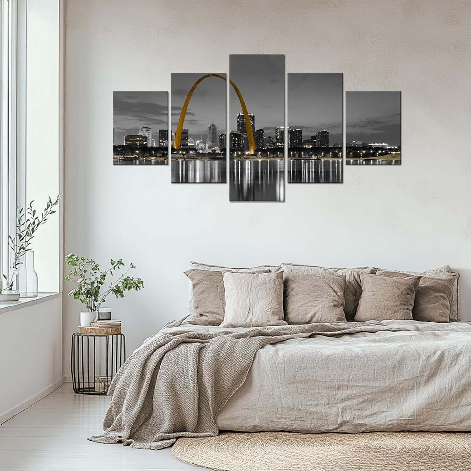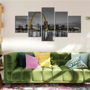 St Louis Arch Wall Art St Louis Skyline Wall Decor Missouri Picture Canvas Print Black and White Painting USA Cityscape Poster Frame Office Home Living Room Bedroom Decoration(60×32 inches)