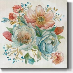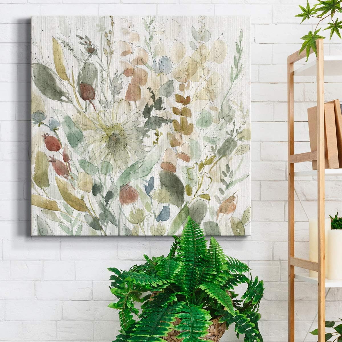 Wexford Home Square Premium Gallery Wrapped Canvas Flower Multicolor Wall Art Abstract Floral Romance Modern Pictures Print for Office, Ready to Hang, linen wildflower garden